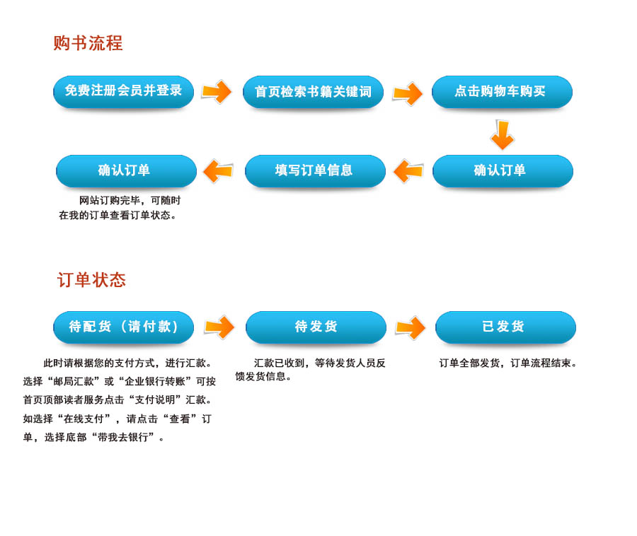 4)信用卡;5)在線支付:首先您的訂單“支付方式”應選擇為“網上支付”;其次進入讀者中心——我的訂單項,查看訂單狀態為
